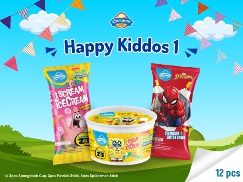 Campina Happy Kiddos 1 - Es krim Isi : Spongebob Cup 4 pcs , Patrick Stick 4 pcs , Spiderman 4 pcs